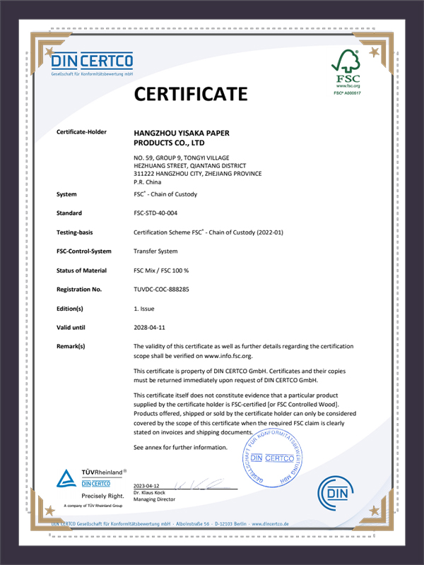 گواهینامه-FSC گواهی Hangzhouyisaka