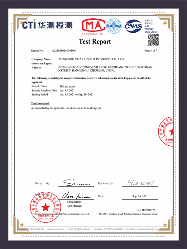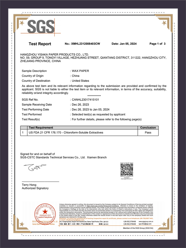 گزارش تست SGS کاغذ موم